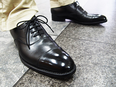 いわゆる「とんがり靴」とは程遠いので、上品なフォルムとなっております^^