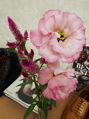 今週のお花はヤリケイトウとトルコキキョウです。