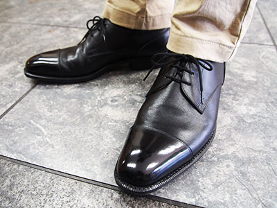 ラストはセミスクエアトゥ(P037)、デザインは3アイレットキャップトゥダービーです。