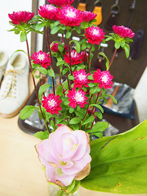 今週の花はプチローズとクルクマです。