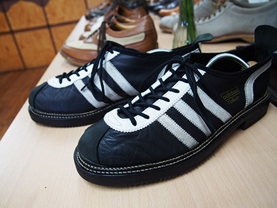 職人Yさんが私物のスニーカーをカスタムしたものを、ただ今店頭にサンプルを置いています!
