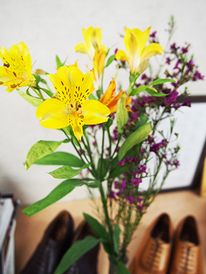 今週の花はアルストロメリアと、ワックスフラワーです。