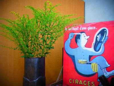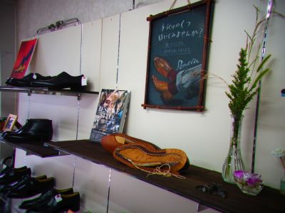靴職人のYさんが、ポスターを貼ったりレイアウトを変えたり