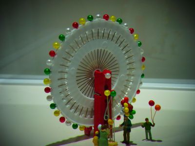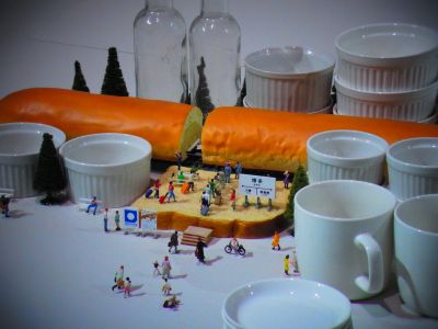 ジオラマの人形と日用品を使って色んな風景に見立てた作品展で、