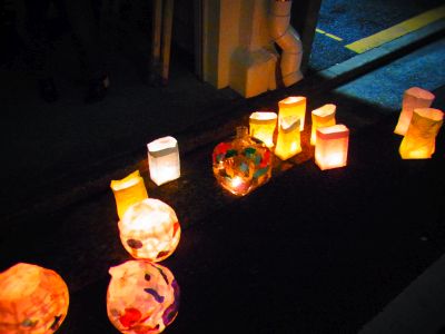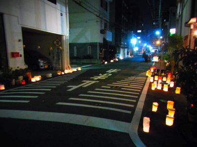 灯明で照らすイベントで博多部一帯(北はベイサイド~