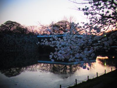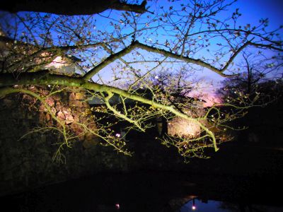 唯一灯りが付いていた一分咲きの「潮見櫓」の写真です