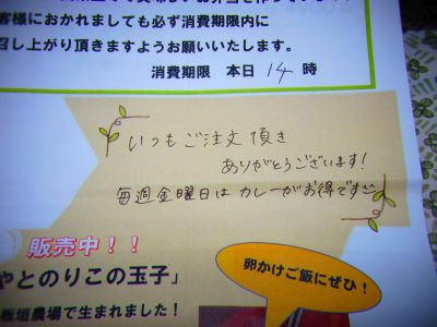 そしてランチメニューに手書きのメッセージがあり、この言葉に