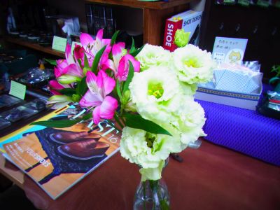 アルストロメリアとグリーンのトルコキキョウです