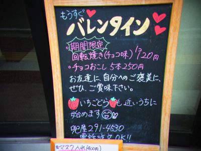 兜屋さん手書きの看板の予告「いちごどら」も嬉しいです