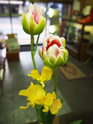 スイートピーとチューリップ(五分咲き)です。