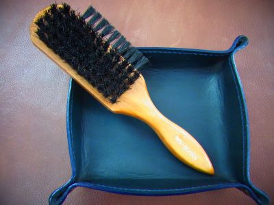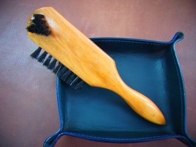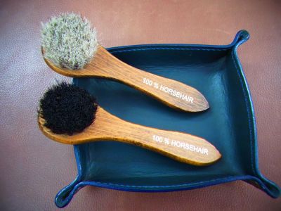 確認しますと、豚毛のブラシで表のブラシは靴に薄く塗り込んだ
