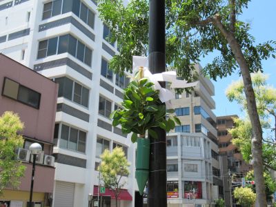 7/1に各流れの町内を清める為の榊と紙垂(しで)が