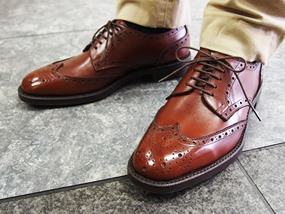 今回はセミスクエアトゥでご用意しているフルブローグダービーのデザインを乗せ替えしております(^^)/