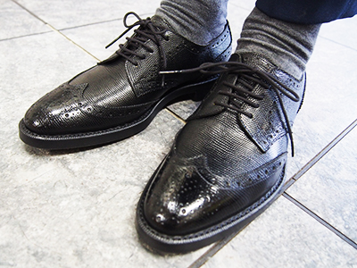今回はセミスクエアトゥでご用意しているフルブローグダービーのデザインを乗せ替えしております(^^)/