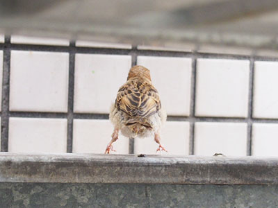 人間が姿を見せなくなると、親スズメたちが餌を運んだりしていました。